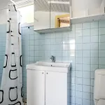 Bathroom facilities also include a shower.